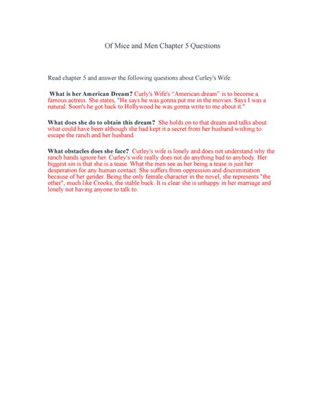 Read Online Of Mice And Men Questions Answers Chapter 5 Epub